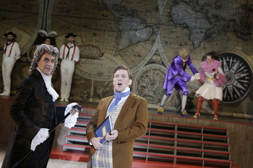 Daran trägt natürlich auch die nicht für die Bühne gedachte Vorlage von Voltaire Mitschuld, die die Biografie des Titelhelden in alle erdenklichen Winkel der damals erschlossenen Welt führt. Im Grunde entpuppt sich das Stück als mehr oder weniger lose zusammenhängendes Stationen-Drama.