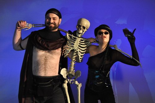 Das Ensemble besteht aus einer bunten Mischung von Künstlern aller Art. Vom klassischen Sänger über die Straßenkünstlerin bis zum frischgebackenen oder erfahrenen Schauspieler ist alles dabei. Donat und sein Team haben die richtigen Säulen ausgewählt, um das Projekt zum Leben zu erwecken. Auch die Nebenrollen sind so eingesetzt, dass sie zu tragenden Figuren der Handlung werden – schade ist nur, dass nicht alle Darsteller mehr Gelegenheiten zum Singen bekommen, da sind nämlich tolle Stimmen dabei, von denen man gerne mehr gehört hätte. Die Titelpartie wird von Fridjof Buntel vielschichtig in der Darstellung, mit warmer Stimme und viel Gefühl gesungen. Seine Ophelia hat einen eher mädchenhaften, überdrehten Bühnencharakter, was Neele Pettig überzeugend verkörpert. Der dramatische Umschwung in die Verzweiflung steht ihr aber ebenso. Ihre gesangliche Darbietung klingt nach Musical und hätte etwas mehr tonale Stringenz vertragen, dennoch passt ihre Stimmfarbe gut zur Rolle. Dass die beiden Hofdamen, Mona Mucke und Maria Noeßler, mitunter eine interessantere Stimme vorweisen können, lässt Fragen zur Besetzungspolitik aufkommen. Daniel Müller als Horatio darf als fast einziger Überlebender am Ende stehen, er glänzt mit hervorragender gesanglicher Darbietung, da möchte man gerne mehr hören. Swetlana Saam gibt Gertrude, die Königin und Mutter Hamlets, voller Anmut und mit dem Anflug eines ironischen Zwinkerns im Auge. Sie hat eine sinnliche, tiefe Stimme. Ihr neuer Ehemann, König Claudius, wird von Peter Saurbier mit vielseitigem Stimmorgan und darstellerischer Präsenz gegeben – toll, dass er sich einmal ans Keyboard setzt und sich selbst begleitet. Sein Let me entertain you hat es wirklich in sich. Ansgar Sauren als Laertes sieht sehr gut aus, bleibt aber zuweilen etwas blass. Dafür trumpft er beim Duell auf und nimmt das Publikum als leidenschaftlicher Bruder und Sohn für sich ein. Stephan Wurfbaum als sein Vater Polonius merkt man die Erfahrung als Darsteller und Musiker an – toll, wie er One day aufführt. Leider muss seine Partie recht schnell das Zeitliche segnen, und so kommt das Publikum nur kurz in den Genuss seines Könnens. Lisa Lehmann als Güldenstern und Thomas Wissmann als Rosenkranz sind ein erstaunliches Paar. Sie, federleicht und zierlich, turnt auf dem großen Wissmann herum, der sie die ganze Zeit auf der Bühne in den verschiedensten Positionen trägt. Beide verkörpern einen der guten Regieeinfälle und unterhalten den Saal mit frechen Grimassen und kecken Bemerkungen, und auch stimmlich harmonieren beide Gegensätze. Einige der Darsteller übernehmen zwei oder sogar drei kleinere Partien und beweisen damit ihre Vielseitigkeit: Daniel Sprint als heroischer Fortinbras/Edelmann und Claudio Pagonis als Priester/Schauspielchef, der einer engagierten und heterogenen Truppe voransteht, überzeugen ebenso wie Stefan Peters, der einen kernigen Totengräber/Voltimand gibt, und Maria Noeßler als launige Matrosin/Totengräberin.