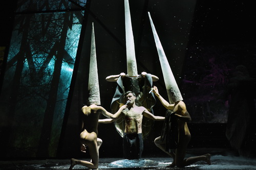 Lang bedient sich unterschiedlichster Musikstile, um mit seinen Mitteln Konkretes in Abstraktes zu verwandeln, Zustände wie Not, Angst, List, Qual teils filmmusikartig zu verstärken und die Absurdität des Augenblicks festzuhalten, indem er süße Melodien mit Clustern und scharfzüngigen Klängen kombiniert. Seinen Sängern gibt er Mikrofone an die Hand, fordert sie in kurzen Sequenzen als Musicalstar, Conférencier oder mit virtuos zwischen stimmlichen Extremen schnell wechselndem Sprechgesang. Dem Chor weist er eine wichtige musikdramaturgische Bedeutung zu. Platziert auf einer Tribüne auf der linken Bühnenhälfte, agiert er in wechselnden Funktionen als orchestrales Klangelement, als Stimme, als Kommentator. Der Chor tritt mit den Sängern in Kommunikation oder intoniert kurzzeitig in herrlich sonorem Brucknerklang einen Choral, in welchen Alin Deleanu mit seinem berückend schönen Counter einstimmt. In der Doppelrolle als Charousek und Wassertrum auf der Bühne irritiert, dass er mit den Wundmalen Jesu gezeichnet als Stigmatisierter auftritt. Auch die weiteren Darsteller verkörpern gleich mehrere Rollen und geben damit Rätsel auf. Im Kontext gesehen, ist das durchaus schlüssig. Denn wie sich die Realität im Fantastischen auflöst, so löst sich auch der Bezug zur konkreten Person. Stimmlich nicht immer so gefordert, wie sie es bieten könnten, agieren die durchweg gut besetzen Solisten überzeugend. Dunkel satt gefärbt und darstellerisch packend gestaltet Thomas Berau die Figur des Athanasius Pernath als verwirrten Menschen.