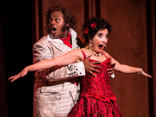 Über solche Plattitüden aber triumphiert die geistreiche, herrlich mitreißende Musik Rossinis. In Meiningen steht mit dem Italiener Stefano Seghedoni ein Kenner des Werks am Pult der Meininger Hofkapelle; er entlockt dem Orchester sonnige Klänge, Agilità und bei den anfeuernden Stretta-Steigerungen Spritzigkeit und Schwung. Außerdem achtet er auch auf die Sänger, denen vom Komponisten teilweise rasante Schnelligkeit abverlangt wird. Gerade beim Grafen Almaviva verlangsamt der Dirigent deutlich das Tempo.