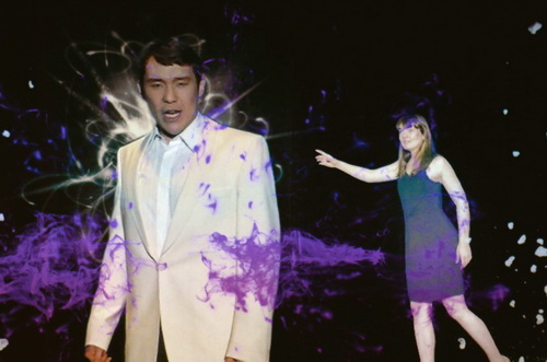 Mit der Pasticcio-Technik, also aus bereits vorhandenen Musiken ein neues Werk zusammenzufügen, hatte van Rensburg den großen Vorteil, individuell auf die Fähigkeiten seiner Schüler eingehen zu können. Um nebenbei auch noch Handlungsdauer und -verlauf bestimmen zu können. Wenn alles aus einer Hand kommt, weckt das ja durchaus Misstrauen. Aber: Van Rensburg gewinnt auf der ganzen Linie! Seine Musikauswahl aus Opern von Henry Purcell und Georg Friedrich Händel hält die Zuschauer 70 Minuten lang in Atem. Leider war weder auf der Website noch im Programmheft Platz, das Arienprogramm aufzuführen. Bei den Kostümen arbeitet er mit langen Mänteln. Ein schöner Trick, der unglaublich schnelle Kostümwechsel ermöglicht. Ob die LED-Halsbänder notwendig sind, bleibt dahingestellt. Die Fantasie steht im Vordergrund. Und die setzt sich auf der eigentlich sehr marginal ausgestatteten Bühne fort. Im Hintergrund eine dreigeteilte Leinwand, daneben eine Blue Box, davor ein Podium, das als Bett und Projektionsfläche dient. Links auf der Seitenbühne im Studio die Musiker. Die richtige Grundlage für ein Feuerwerk an comicartigen bis spritzigen Einfällen – denn van Rensburg arbeitet mit Projektionen. Und die Blue Box ermöglicht den Einbau der Akteure in die Projektionen, allerlei komische Effekte eingeschlossen. Hier allerdings fällt der Regisseur der eigenen Akribie zum Opfer. Auf den Zentimeter genaue Standorte sind bei der Kürze der Proben nicht so genau einzuhalten, wie van Rensburg geplant hat. Geschenkt. Es gelingt ihm, eine Geschichte zu erzählen, wie sie barocker kaum sein könnte.
