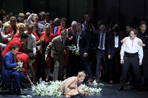 Diesen Jubel, noch potenziert, heimsen schlussendlich auch die beiden Männerdarsteller in den Hauptpartien ein, die ihre Rollendebüts geben. Allen voran Matthew Polenzani als Fernand, begnadet mit einer Tenorstimme wie geschaffen für ein perfektes Musikdrama im Stile der Grand Opéra. Der Amerikaner ist zwar von Intendant Niklaus Bachler zu Beginn als ein Stück weit indisponiert avisiert worden. Doch scheint diese Vorsichtsankündigung nicht wirklich vonnöten. Polenzani agiert auch spielerisch gern und agil, bewegt sich souverän und unbeirrt durch die Anforderungen dieser Virtuosität im Höchstmaß verlangenden Partie. Scheinbar anstrengungslos klettert seine Stimme in die höchsten Höhen wie in die tiefsten Klüfte des vokalen Donizetti-Gebirges. Schon frappierend, wie er mit einem Piano fesselnder Ausdruckskraft das Auditorium zum gebannten Schweigen bringt. Einfach grandios, wie seine Stimme aus der versammelten Pause, die so fast zum Ereignis wird, an Volumen und Brillanz gewinnt, diese noch steigernd. Wie Polenzani im Schlussakt sein Lamento Ange si pur angeht, ihre extrem lyrische Linie aussingt und am Ende quasi aushaucht, ist ein wirklich großer Moment dieser Aufführung und wohl auch wegweisend für die weitere, nur nach oben weisende Karriere.