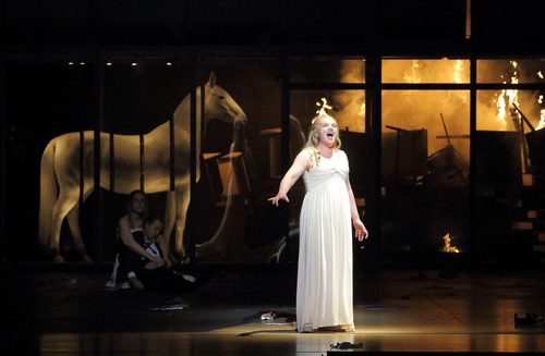 Sein Eingangsbild hat zynischerweise nochmals an Aktualität gewonnen: Durch Heimatlose, deprimiert Fliehende wandeln die Nornen, ohne mehr eine Erklärung für die Bitterkeit der Gegenwart zu finden. Die findet sich in der intimen, wenngleich naiven Paarbeziehung zwischen Siegfried und Brünnhilde. Im ästhetisch hochwertigen, von Menschen getragenen Bretterverschlag schnaufen sie kurz in der Tragödie auf, bis sich Siegfried endgültig in die kommerzialisierte Jetztzeit aufmacht, zwischen polierten Glasfassaden und domestizierter Mittelalterromantik. Ein letztes Mal lässt Kriegenburg seine famosen Statistenmassen als Rhein tänzeln, dann wechselt die Szenerie in Harald B. Thors schick-kühle Firmenzentrale der Gibichungen. Wenig hat sich vom präzisen Figurenspiel abgeschliffen. Der Hausapparat erneuert diese Götterdämmerung präzise, und die vielen neuen Kräfte finden sich in die ausgefeilte Inszenierung. Der letzte freie Held, der frohe Fremdkörper im korrupten, verrohten Wirtschaftsalltag zwischen Orgie, Schreibtischtat und Lebensüberdruss. Er muss scheitern, und das widerfährt ihm im furiosen Finale. Kriegenburg lässt die Welt brennen, der Kollaps zerstört die sterile Wirtschaftswelt, doch dann sein großes, sein wichtiges Schlussbild in volatilen Zeiten: Die Menschlichkeit obsiegt im Symbol eines Figurenkreises weiß Gekleideter, die eine oft vergessene tragische Figur des Rings, Gutrune, in die Arme schließen und zum Erlösungsthema eine schöne, eine bleibende Botschaft präsentieren.