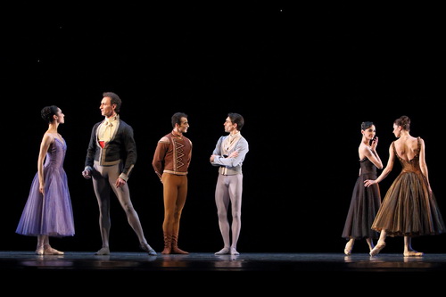 Den Einstieg stellt die Wiederaufnahme der 1947 uraufgeführten und 1975 in München erstmals aufgeführten Choreografie George Balanchines zur Sinfonie in C von Georges Bizet. Vor mediterran hellblau ausgeleuchtetem Bühnenhintergrund erlebt das Publikum klassischen Spitzentanz im feinem Tüll und strahlendem Weiß. Balanchine schuf zu den leicht durchgängigen rhythmischen vier symphonischen Sätzen des 17-jährigen, französischen Komponisten eine sehr an die Musik ausgerichtete bewegungsreiche tänzerische Darstellung. Anspruchsvolle Soli werden vom stetig anwachsenden Ensemble begleitet und eingerahmt. Die eleganten und modern anmutenden Bewegungsabläufe im neoklassizistischen Stil begeistern auch heute. Wiederum berückt Lucia Lacarra mit ihrer Anmut und grazilen Gestik nahezu schwebend in den Armen von Marlon Dino als Solisten sowie Ivy Amista mit perfektem Tanz und eleganter Haltung und Bewegung, begleitet von Maxim Chashchegorov.