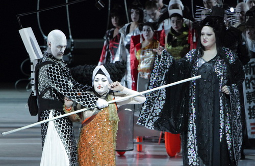 Dabei bleiben die Oper und gerade Puccinis Völkerschau anhaltender im Gedächtnis, und sportiv geht es dank der ästhetisch unverkennbaren Handschrift des Regiekollektivs La Fura dels Baus auch auf der Bühne zu. Nach deren spektakulärem Ring in Valencia, Arbeiten bei der Ruhrtriennale und verschiedenen Happenings zählt die Verpflichtung der visionären Künstler um Carlus Padrissa neben Andreas Kriegenburg zu Intendant Bachlers klügsten Personalentscheidungen. Aufgrund ihrer Arbeit für die Expo Shangai mit schriller, moderner Kultur Asiens vertraut, liefern die Universalregisseure eine schrille Achterbahnfahrt, die zu Puccinis Drittverwertung entlehnter chinesischer Geschichte hervorragend passt.
