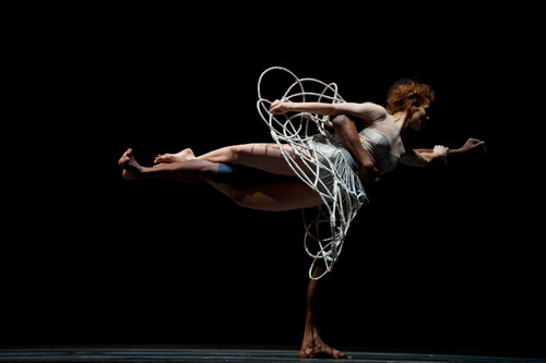 Immerhin ist in Antiche Danze von Mauro Bigonzetti erkennbar, dass der Choreograf den Ballett-Mitgliedern ein Requisit an die Hand gegeben hat, um daraus etwas zu gestalten. In diesem Fall ist es der Reifrock, mal mit Bespannung, mal ohne. Zur Musik von Ottorino Respighi aus Antiche Danze ed Arie per Luito, einer Mischung aus Renaissance-geleiteter und sinfoniehafter Musik, bringen die Tänzer eine Kombination aus mechanischer und betont moderner Bewegung auf die Bühne. Da ist nichts groß zu interpretieren. Es macht einfach Spaß, erst die blütenhaften Bewegungen der Hände und später die gegenläufigen Haltungen von Männern und Frauen zu erleben.