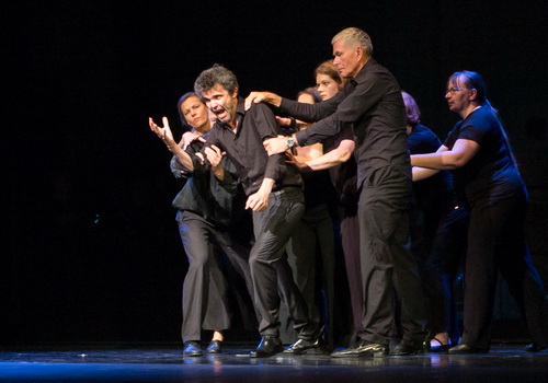 Ein Fest für Tanzfreunde ist das. Das moderne, dennoch konventionelle Schrittmaterial erzeugt eine ätherische Wirkung, etwa bei Eurydikes Aufnahme in den Kreis der Seligen. Die Synchronizität der Damen wäre an manch größerem Haus wünschenswert. Schon zu Beginn zeigt Martina Wimmer im Vorspiel den Tod der Nymphe mit gefühlvollen, zurücknehmenden, fließenden Bewegungen zur eingespielten Pianovariante von Gluck. Da taumelt eine Schönheit mit viel Armarbeit und wenig Plié. Diese Momente gelingen eher als die teils unnötige Doppelung mit den Sängern, die Unruhe erzeugen, die Darsteller teils zu konzertanten Statisten degradiert und deren vorhandenes szenisches Potenzial übergeht. Das stilbildende Moment nämlich rettet die Problematik Glucks nicht. Die melodiösen, dahinschwebenden Arien und Duette stehen einer in zwei Sätzen erzählten Handlung gegenüber. Das notwendig eingeschriebene Happyend poltert schnell daher, der Rest ist viel Lamento. Das erzählt Ramzews nicht, verlässt sich auf ihre Company und breitet oft inhaltsleere, wenngleich ästhetisch hochwertige Choreografien lange aus. Dynamik oder Abwechslung hilft das nicht.