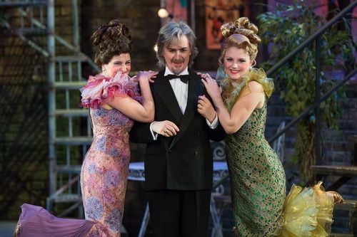 Rodula Gaitanu hat flott inszeniert und hält das Tempo beinahe bis zum Finale durch: Mit viel Action, unbeschwerter Komik, etwas Klamauk in den vielen Verwechslungs- und Verkleidungsszenen sowie aufgemotzt mit gekonnt choreografierten zahlreichen Tanzszenen. Aschenputtel haust auf der Hinterbühne eines Varieté-Theaters. Die Bühne hat Simon Corder entwickelt, die Ausstattung insgesamt stammt von der Nationaloper Athen mit den entsprechenden Versatzstücken. Statt des Palastes des Prinzen finden wir uns nach Szenenwechsel im Foyer und Zuschauerraum seines Palace Theatre.