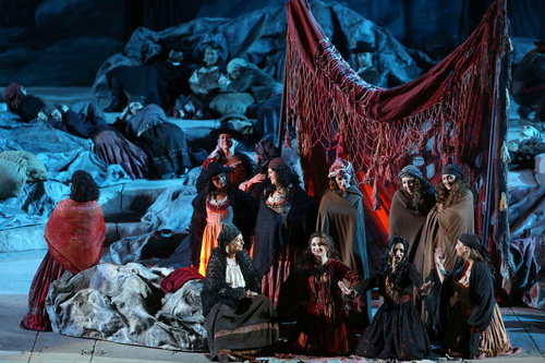 Echte Pferde, Maultiere, ein buntes, bewegungsreiches Treiben in den Massenszenen mit vielen kleinen Handlungssträngen auf Nebenschauplätzen. Ein fast ständig eingesetztes Ballett, farbenfrohe, traditionelle, folkloristische Kostüme, ein naturalistisches Sevilla mit vielen Häuschen, einem Marktplatz und bunten, riesigen bemalten Prospekten, die die Szene verorten, besonders stimmungsvoll und sehenswert machen sich die Felsenillusionen im dritten Akt: Bereits aus dem Jahr 1995 stammt Franco Zeffirellis Inszenierung und Ausstattung der Carmen von Georges Bizet. Der Grandseigneur der klassischen, konservativen, italienischen Operninszenierungen schrammt dabei schon öfters an der Kitschgrenze entlang, überfrachtet gewollt die Szenerie und vermag mit seiner großen Arena-Erfahrung die riesigen Dimensionen des römischen Amphitheaters virtuos auszunützen. Und er trifft damit genau den Publikumsgeschmack. Natürlich bleiben immer ein konservativer Traditionalismus und unbedingte Werktreue sein wichtigstes Credo, aber genau deshalb reist das Publikum ja hierher in die malerische Stadt am Fluss Etsch. Neu sind auch riesige, mehrsprachige Übertitel auf der Seite, die aber am Gesamtbild eher stimmungszerstörend wirken.