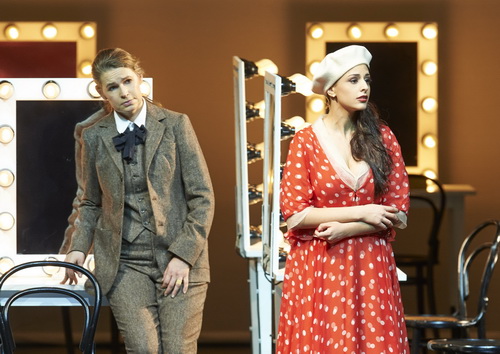 Bei der üblichen Wiener Fassung aus 1916 mit dem komponierten Vorspiel hat sich Sven-Erich Bechtolf ganz in Musik und Text vertieft: In dem schon von den Salzburger Festspielen bekannten ästhetischen Jugendstilsalon von Rolf Glittenberg, die geschmackvollen Kostüme stammen von Marianne Glittenberg, bleibt er immer dezent am Herzschlag der Handlung. Das Vorspiel strotzt ebenso wie die Buffo-Szenen der Oper zwar nicht vor Lebendigkeit. Denn Bechtolf sind das subtile Herausarbeiten der Charaktere und ihre Beziehungen zueinander wie auch die feine Ironie wichtiger. Die Oper selbst, vom reichsten Mann von Wien samt Gefolge von ansteigenden Stuhlreihen beobachtet, mit den drei zerlegten Klavieren, die die „wüste Insel“ versinnbildlichen, verströmt morbide Ruhe, unterbrochen von den buntscheckigen Komödianten, die mit Tretrollern herumsausen.