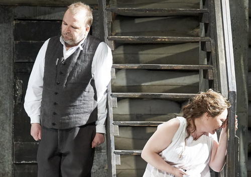 Eine das gesamte Bühnenportal ausfüllende Mühle, deren Zahnräder ständig in Bewegung sind und die unabwendbare Unentrinnbarkeit symbolisieren im ersten Akt. Enge auch im mit Säcken vollgestopften Haus der Küsterin im zweiten Akt. Im letzten Akt schließlich eine beinahe absolute Leere in jenem Raum, in dem die Tragödie ans Tageslicht kommt. Regisseur David Pountney und Bühnenbildner Robert Israel haben Jenůfa, dieser Oper aus dem mährischen Bauernleben des 20. Jahrhunderts, alles an Realismus gelassen: In diesem stimmigen Ambiente hat Pountney die Protagonisten, die der Zeit gemäß in entsprechende Kostüme gekleidet sind, scharf gezeichnet und präzise geführt. Ohne Überfrachtung werden die Geschichte und die Charaktere klar und einfach, verständlich und nachvollziehbar durch eine detailreiche, differenzierte Personenführung dem Publikum präsentiert.