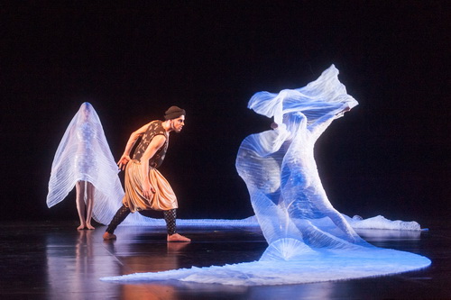 Dort verkörpert der groß gewachsene Mihael Belilov mit Sprungkraft und weiten Bewegungen sehr überzeugend einen Sultan zwischen Gewalttätigkeit, Misstrauen und sexuellem Begehren. Als seine Gemahlin begeistert Camilla Matteucci restlos vor allem durch ihre Leichtigkeit und Geschmeidigkeit; wie sie anmutig fast enthemmt und biegsam wie eine Schlange mit dem muskulösen, kraftvollen, sprungstarken Sklaven Leonam Santos im gewagten, überraschenden Pas de deux tanzt, ist ein Höhepunkt des Abends. Natürlich bildet Kaori Morito als Scheherazade in ihrem weißglitzernden Anzug und ihrer eleganten, sanft schwebenden tänzerischen Ausdrucksweise das Zentrum der bewegten Erzählung. In kleineren Rollen gefallen der Wesir, Felipe Soares Cavalcante, Sindbad, Aleksey Zagorullo, und das ganze Ensemble in geschickt aufgebauten Formationen. Witzig erscheint das Haschen nach den Lichtkreisen, den Monden oder Gestirnen. Lediglich im zweiten Teil lässt die Spannung etwas nach; da hat sich das Auge schon an die schönen Tanz-Bilder gewöhnt.