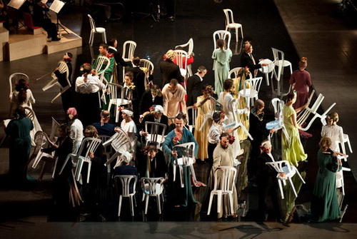 Zur Eröffnung bietet Intendant Johan Simons eine eigene Regie-Arbeit. In der Reduktion auf das Wesentliche gelingt ihm ein leichter Zugang zu einem eher schwer verdaulichen Thema. Damit fasziniert er das Publikum. Ein gelungener Auftakt mit köstlich dargebotener Musik unter dem Dirigat von René Jacobs.
