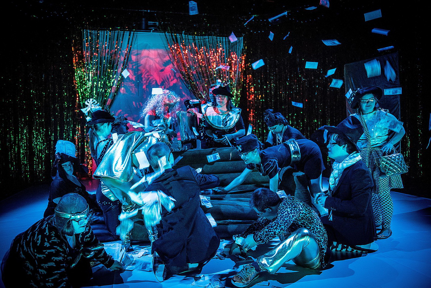 Wie bunt und sinnlich Theater sein kann, das vermittelt die polnische Gruppe Teatr 21 in ihrem Stück Downfalls. Episode 2, in dem es um Geld und das Leben mit einer geistigen Behinderung geht. Justyna Sobczek verschränkt diese Themen zu einer abwechslungsreichen Revue aus Interviews, Tanzeinlagen und lockeren Spielszenen. Die glamouröse Ausstattung mit goldenem Schnürvorhang, aufwendigen Kostümen und viel Glimmer trägt zum Erfolg dieser besonders anregenden Theaterproduktion bei.