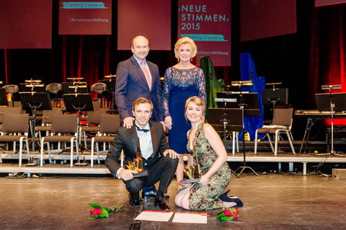 Elsa Dreisig ist die erste bei den Damen und schon länger im Blick der Stiftung: Sie ist als Stipendiatin der Liz-Mohn-Kultur- und Musikstiftung von 2015 – 2017 Mitglied im Opernstudio der Staatsoper Unter den Linden in Berlin. Der französischen Sopranistin mit dänischen Wurzeln ist das Singen sozusagen in die Gene gelegt: „Meine Mutter ist Opernsängerin, meine Tante ebenso, und auch meine Cousine. Wir sind alle Sopran.“ berichtet sie glücklich. Schon beim Vorsingen in der Stadthalle singt sie sich mit dem Viljalied aus der Lustigen Witwe nach ganz oben in den Kreis der Favoriten. Mit den königlich gesungenen Koloraturen aus Rossinis Semiramide gewinnt sie im Semifinale den Publikumspreis. Im Finale hört man sie dann als Micaela aus Carmen – und wieder als Hanna Glawari mit ihrem Viljalied. Dirigent Graeme Jenkins hat den traumwandlerischen Reiz der Stimme wohl schon vorausgeahnt und setzt die Duisburger Philharmoniker nicht nur auf ihren Instrumenten als summendes Echo ein. Dreisig vergleicht diesen Moment später mit einer Welle, in der man plötzlich steht. Und von Jenkins, der die ganze Woche alle Sänger begleitet hat, ist sie begeistert: „Er ist absolut perfekt für junge Sänger wie uns. Er könnte ja auch sagen, das ist hier nur ein Wettbewerb und nicht mein Leben. Aber er gibt alles, was er hat, um uns zu helfen.“