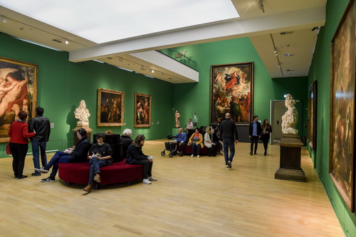 Schon kurz nach Beginn ist der Alltag des Reisenden vollkommen ausge­blendet. Zu stark ist die Beschäf­tigung mit den neuen Sinnes­ein­drücken. Während der Einweisung ist man darauf hinge­wiesen worden, dass es zu Übertra­gungs­pro­blemen kommen kann. Der psycho­lo­gische Effekt ist eine perma­nente unter­schwellige Angst, „abgehängt“ zu werden, dank einer techni­schen Panne aus dem Rennen geworfen zu werden. Da hilft auch der Hinweis wenig, man möge sich an einen der beglei­tenden Helfer wenden. Beruhigung tritt erst ein, wenn man den Helfer sieht, mit ihm Augen­kontakt aufnimmt, zwei Daumen in die Höhe gestreckt werden. Ganz nebenbei lernt man Ausschnitte der Sammlung des Kunst­pa­lastes kennen, wird durch die Ausstellung der Maler Cranach geführt. Vor der Schablone der Vergan­genheit erklingen Infor­ma­tionen über die Gegenwart. Auf das Ohr gibt es Anwei­sungen über die nächsten Schritte, Zitate von Spionen, die „teilweise verfremdet werden mussten, weil die Agenten Angst hatten, dass ihre Stimmen erkannt werden könnten“, verrät Paez, und immer wieder Fragen nach Entschei­dungen. Werden sie zu schnell getroffen, gibt es keine Möglichkeit zur Revision. Das verur­sacht Unbehagen. Aber es gibt auch Verbündete. Reise-Teilnehmer, die sich sympa­thisch finden. Neue, volatile Netzwerke entstehen. Die am Ende der Reise im besten Fall mit ein paar netten Worten wieder aufgelöst werden.