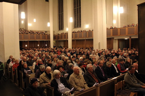 Zu einem weiteren Ärgernis für die etablierte Kirche entwickelt sich etwas, das ausschließlich zur Erbauung und Besinnung der Gläubigen gedacht war: der gottesdienstliche Gemeindegesang. Auch ihn hatte sich die Kirche über Jahrhunderte aus bewusst „schlechten“ Gründen selbst vorbehalten und dafür gesorgt, dass die Mitglieder der Gemeinde dem Vorbild, Vortrag und Gesang der Priester zu folgen hatten. Luther beklagt, dass „allein der Chor der Pfaffen und Schüler singt und antwortet, wenn der Bischof das Brot segnet oder Messe hält.“ Die Texte der Liturgie werden – natürlich – in lateinischer Sprache vortragen. Musik fürs Volk in einem Gottesdienst – undenkbar. „Davon ich sing’n und sagen will“, hält Luther aus theologischen Gründen dagegen – und zwar in Deutsch.