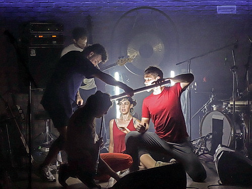 Das Batzenhäusel ist das Festivallokal mitten in der Bozener Alstadt gelegen und de facto eine Brauerei mit einem riesigen Außen-Gastronomie-Bereich. Eine Etage tiefer, im Sudwerk, waltet im Studiobühnen-Format das wohl konzentrierteste musikalische „Versuchslabor“ des Festivals. Hier wird dann auch die mehrstündige, frei improvisierte, aber letztlich aus einem durchgängigen Bass-Ostinato nebst allerhand, auch psychedelisch wirkender Improvisationen bestehende Performance Kabarila fortgesetzt, die von dem Ethnologen Stefan Cucco Festini ausgedacht und vom Bassisten Lukas Kranzelbinder realisiert worden ist – mit dem Ziel, auf der Basis archaischer Trance-Rituale und von Elementen aus der Rave-Kultur konventionelle Zeit- und damit Erlebnisformate größer und freier zu machen.