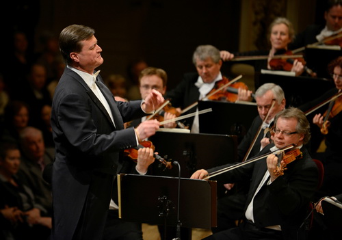 Für Ulf Schirmer, Intendant und Generalmusikdirektor der Oper Leipzig, gehört der Ring einfach an ein Haus wie Leipzig. Nachdem es vor seinem Amtsantritt kein nennenswertes Wagner-Repertoire am Hause gab, hat er einfach angefangen, die Werke zu spielen. Und von seinem großen Traum, das gesamte Werk Wagners einschließlich der drei Frühwerke im Repertoire zu haben, ist der Hausherr nicht mehr allzu weit entfernt. Doch der Ring bildet das zentrale Fundament. Die Herangehensweise, insbesondere wenn es um einen Zyklus ohne Pause geht, ist eine „Aufgabe, die von weitem auf ihn zukommt.“ Für ihn ist das ein „Höhepunkt im Dasein als Dirigent“. Interessant ist zu erfahren, wie Schirmer das Lebensgefühl, das der Ring bei ihm und seinen Mitarbeitern auslöst, beschreibt. So „meldet sich der Ring etwa anderthalb Wochen vor den aufwändigen Proben in meiner Seele“, und er „durchwebt das Haus“, sagt Schirmer. Das zyklische Spielen des Rings verändere alles, „insbesondere die Tempi verändern sich, alles wird verstärkt, wenn man weiß, dass nach dem Rheingold noch drei weitere Abende folgen. Alles ist mehr im Fluss“. Und dass der Dirigent auch ein penibler Anhänger einer detailgetreuen musikalischen Aufführungspraxis ist, zeigt sich daran, dass er die in der Partitur des Rheingold vorgesehenen 18 Ambosse in den beiden Verwandlungsszenen durch eine gesampelte und digitalisierte Aufnahme von Originalambossen durch zwei Pianisten hat einspielen lassen und damit einen Klang erzeugt, der dem Original sehr nahe kommt und so in dieser Form selten zu hören ist. Für die Szene mit Hagens Mannen in der Götterdämmerung sind extra drei große Stierhörner angefertigt worden, die es ebenfalls so in dieser Form in keinem Orchester gibt.