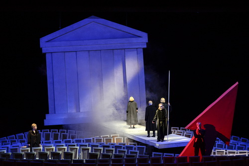 Den Beginn mit dem Rheingold macht die junge Regisseurin Verena Stoiber gemeinsam mit Sophia Schneider, die sowohl das Bühnenbild gestaltete als auch die Kostüme entwarf. Und es wird eine durchaus bizarre Vorstellung mit drastischen Szenen, die das Chemnitzer Publikum spaltet. Wenn Alberich beispielsweise der Liebe entsagt, sich die drei Rheintöchter packt, ihnen die Haare abschneidet und als Trophäen wie einen Skalp hochhält, dann ist das schon ein starkes Bild, das erahnen lässt, dass die Tragödie des Vorabends des Ring des Nibelungen schon im vollen Gange ist. Stoiber, die als Regieassistentin von Calixto Bieito begonnen hat, sieht in der aktuellen „MeToo“-Debatte einen Bezug zu ihrer Sichtweise des Rheingold, den sie auch als selbstständigen Abend verstehen möchte und nicht als Teil eines Ring-Gesamtkonzeptes. Auch Stanley Kubricks legendärer Film 2001 – Odyssee im Weltraum hat sie in ihrer Sichtweise beeinflusst.