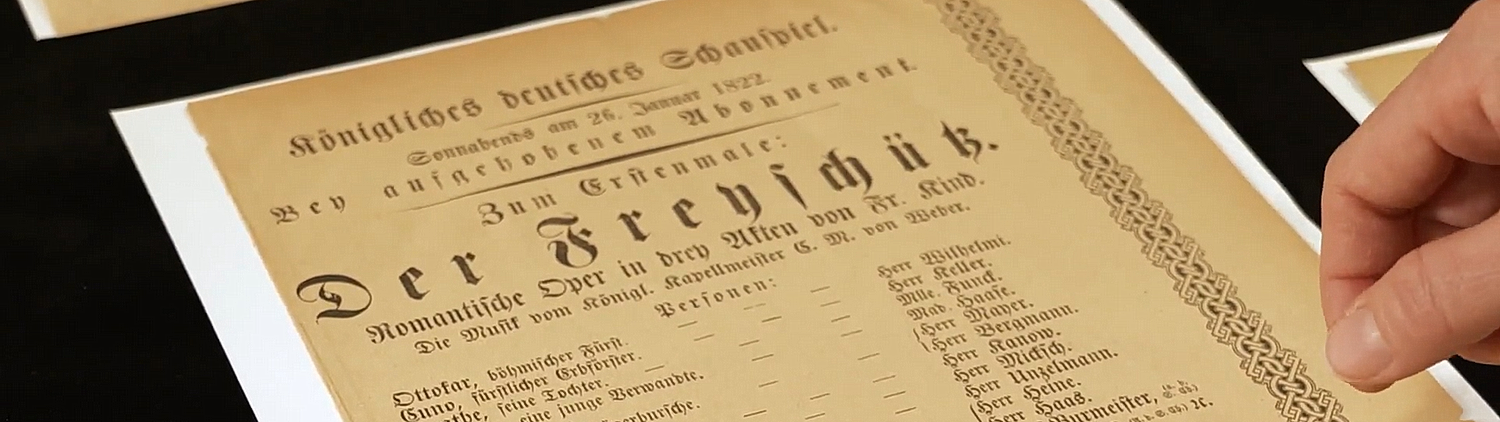 Abhilfe kann vielleicht ein Blick zurück geben. Anlässlich des 200. Jubiläums der Uraufführung spürt das Historische Archiv der Sächsischen Staatstheater auf einem virtuellen Streifzug der Rezeptionsgeschichte von Webers Oper an authentischen Orten nach. In Anlehnung an die sieben magischen Kugeln des Jägerburschen Max lässt sich in sieben Video-Etappen mit Gesprächen, Exponaten, Tonbeispielen und ergänzenden Textbeiträgen die Spur des Werks mit Bezug zur Semperoper nachverfolgen. Die erste Etappe gehört dem Komponisten selbst und seinem Wirken in und für Dresden.