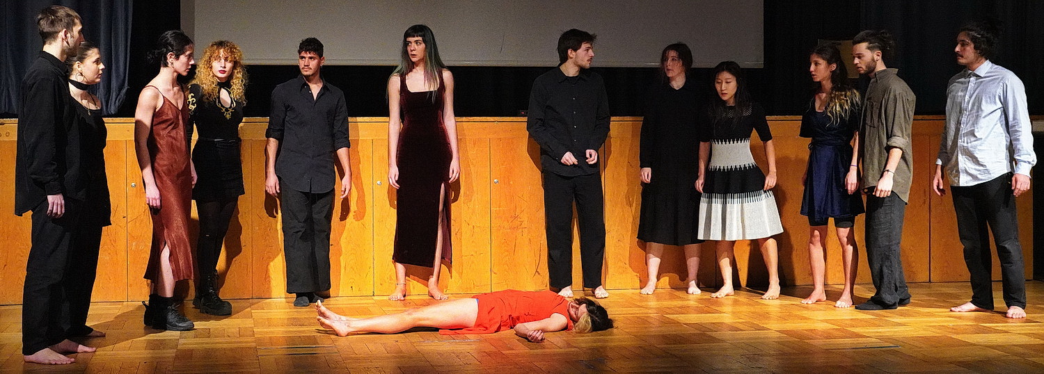 Ursprünglich sollte die Fortsetzung des Projekts bereits im September stattfinden. Wie in diesen Tagen schon fast üblich, verlangten Erkrankungen von Teilnehmern eine Verschiebung. Dem hohen Engagement aller Verantwortlichen war es zu verdanken, dass der Gegenbesuch endlich im Dezember stattfinden konnte. Der Campus war das Studio des Theaters der Klänge. Stand in Monemvasia noch die Individualität im Vordergrund, war es in Düsseldorf das Kollektiv, auf das Jacqueline Fischer hinarbeitete. Auch hier erloschen die kritischen Stimmen der jungen Menschen nicht, und so manches Murren war wohl in der Woche zu hören. Für gute Stimmung sorgten die deutschen Projektteilnehmer, wenn sie ihren griechischen Gästen am Abend ausgesuchte Orte in der Düsseldorfer Innenstadt näherbrachten. Die Verantwortlichen blieben bei ihrer Linie. Und so entstand in der Woche nicht nur ein weiterer Film, für dessen Vertonung der künstlerische Leiter des Theaters der Klänge, Jörg Lensing, verantwortlich zeichnete, sondern auch eine eigene Choreografie. Die Woche verflog mindestens eben so schnell wie die im Sommer in Griechenland.