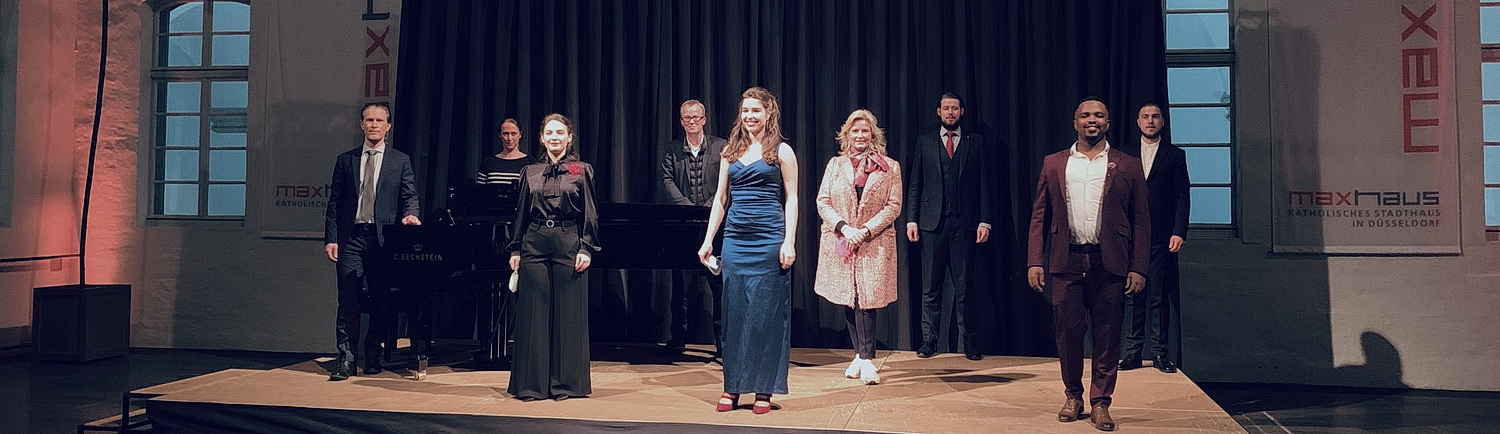 Das Maxhaus in Düsseldorf ist ein ehemaliges Kloster und versteht sich heute als das Zentrum der katholischen Kirche in der Landeshauptstadt. Der mit Glas überdachte Innenhof des Gebäudes eignet sich für Konzerte mit Publikum, und so manches Opernstudio-Mitglied hat hier schon seinen Auftritt zum Abschluss eines Meisterkurses absolviert. Ohne Publikum allerdings, so kann man im Video lernen, scheint die Akustik eher unzulänglich, zumal, wenn die Tontechnik es nicht ausgleicht. Dabei hat das Opernstudio ein durchaus anspruchsvolles Kurzprogramm zusammengestellt, wenn man vielleicht vom ersten Auftritt absieht. Da singt Jake Muffet die Arie Papagena, Papagena aus der Zauberflöte. Das hat man schon oft pfiffiger gehört. Auch wenn die Akustik nicht stimmt, hängt die Wirkung hier ja auch stark vom Auftritt des Sängers ab, und da ist das Zücken der Flöte nicht alles. Überhaupt verwundert nach einer Woche mit Nylund etwas, dass die Sänger allesamt sehr steif auf der Bühne stehen. Auch Ville Enkelmann, hoch engagierter Künstlerischer Leiter und Klavierbegleiter, vermag kein rechtes Feuer zu entfachen, gleichwohl sein Spiel einwandfrei ist. Mbundu präsentiert sich mit E fra quest’ansie aus I pagliacci ordentlich. Rabes Koloraturen in der Arie der Zerbinetta aus Ariadne auf Naxos sind kunstfertig gesungen, schaffen es aber ebenfalls nicht, die Tücken der Akustik in der Aufzeichnung zu überwinden. Aleksandrova wagt sich gekonnt an Nobles Seigneurs, salut aus Meyerbeers Hugenotten. Und mit Nicoaras Arie des Rocco aus Beethovens Fidelio ist die Aufzeichnung dann bereits zum Ende gekommen. Das ist wirklich kurz und knapp. Selbst den gemeinsamen Vorhang gibt es nur als Pressefoto.