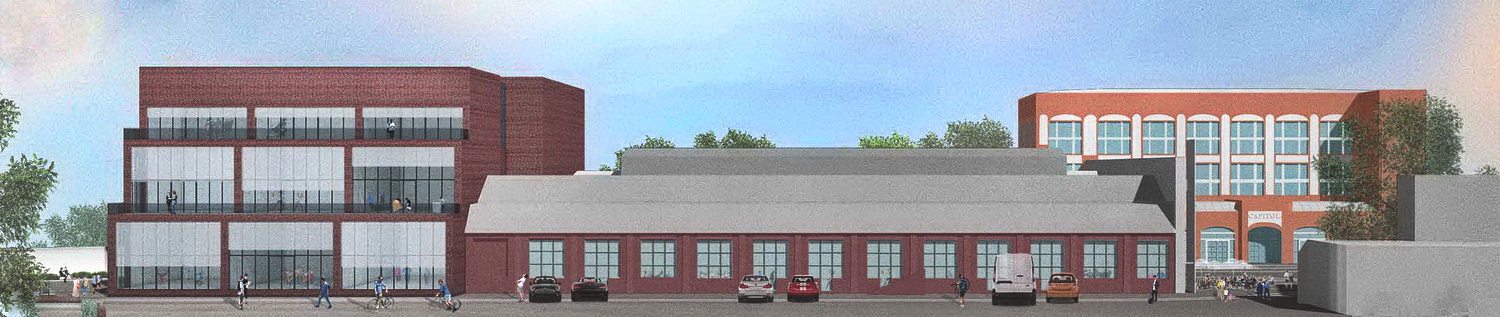 Links ist der Erweiterungsbau zu sehen, rechts das Capitol - Skizze © Sieber Architekten