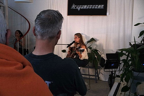 „Ich bin Cosima, 22 Jahre alt und Singer-Songwriterin aus Deutschland. Ich erzähle gern Geschichten in meinen Songs durch Texte, die Bilder malen“, beschreibt Cosima sich selbst. Mit entwaffnender Freundlichkeit und hübscher Stimme demonstriert Cosima, dass ihre Gitarrenfähigkeiten sich, positiv ausgedrückt, auf Hobby-Niveau bewegen. Drei Mal bricht sie wegen Fehlern ab. Die Texte sind unverständlich – warum muss man Englisch singen, wenn man es nicht kann? – und das Gleichmaß der Musik ist auf Dauer ermüdend. Dass eine Freundin auch noch mit klickendem und blitzendem Fotoapparat die Stimmung stört, rundet das Bild ab. Getragen von der Begeisterung vieler Freunde und Bekannter darf die Sängerin sich über Applaus freuen, und ihre Nachfolgerin sorgt denn auch noch dafür, dass eine Zugabe fällig wird. Angekündigt ist Kyanne, die mit „melancholischem Eco-Pop und bewusstseinsschärfender Poesie“ in Begleitung des Pianisten Kai Yantiri überzeugen will. Die Vorstellung, den Rücken eine weitere Stunde im Stehen zu belasten, sorgt allerdings dafür, sich anderen Programmpunkten zuzuwenden.