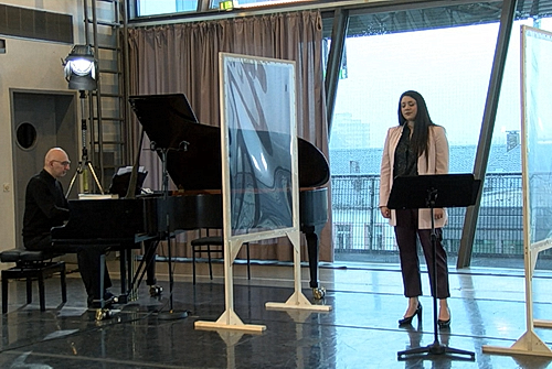 Drei junge Sänger aus dem Frankfurter Opernstudio durften nun mit Brigitte Fassbaender arbeiten. Normalerweise findet so ein Kurs hinter verschlossenen Türen statt, gelegentlich auch vor Publikum. Nun konnte man einen derartigen Kurs in Ausschnitten im Stream verfolgen und erleben, wie differenziert und individuell die Fassbaender auf die Sänger und ihre Arien oder Lieder eingeht und intensiv an einzelnen Phrasen arbeitet. Begleitet wurden die drei am Flügel von Michał Goławski und Felice Venanzoni.