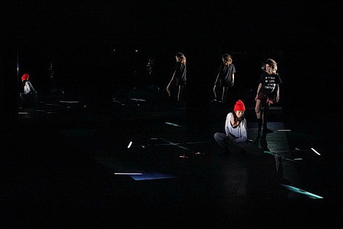 Beim Blick auf den Monitor wird aber auch deutlich, dass die künftigen Zuschauer einem Experiment beiwohnen werden. Sie können unter drei Kanälen aussuchen, was sie gerade als größeres Bild sehen möchten. Ein Vollbild aber wird es nicht geben. Das schließt vermutlich die volle Konzentration auf eine Szene aus. Zumal nebenbei der Chat läuft. Im Saal vergewissern sich die Tänzer, die gerade nicht auf der Bühne sind, immer mal wieder ihrer Wirkung auf dem eigenen Mobiltelefon. Kleinstbilder in schnellem Wechsel. Ein größerer Monitor ist beim Besuch der Uraufführung am 20. November unbedingt ebenso zu empfehlen wie der Gebrauch von Kopfhörern. Und nein, auch dieser Livestream wird die Live-Erfahrung vor Ort nicht ersetzen. Weil er es auch gar nicht will. Siegal begreift das Ereignis vielmehr als zusätzliche neue Kunstform, in der noch viel Potenzial liegt. Deshalb lohnt es sich einzuschalten, wenn es am kommenden Freitag um 20 Uhr heißt: Alle für einen und einer fürs Geld. Kapitalismuskritik auf neuen Wegen.