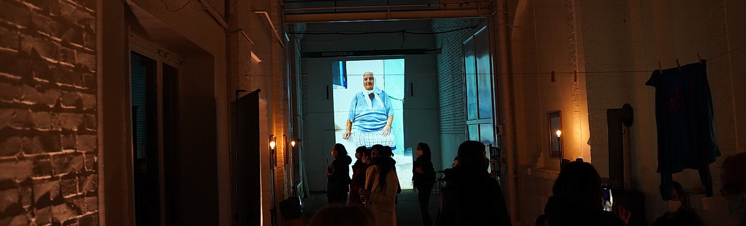 Zwei Jahre hat Hasse an ihrem Projekt gearbeitet, in der Zeit mehr als 100 Inter­views geführt. Am Ende stehen zwei Veran­stal­tungen: eine perfor­mative Ausstellung am 22. Oktober, eine Perfor­mance eine Woche später. Der Corona-Virus ist auch ihr mächtig in die Pläne gefahren. Für die Ausstellung verzichtet die Künst­lerin auf Eintritts­gelder, hat bis zur Straße hin alles auf Sicherheit ausgelegt. Im Innenhof sammeln sich die Gäste mit Sicher­heits­ab­stand, ehe sie nach Hände­des­in­fektion und Herkunfts­nachweis mit Masken in Gruppen für maximal 25 Minuten den Loft betreten dürfen, der in anderen Zeiten ein „griechi­sches Guerilla-Restaurant“ beher­bergt. Hier zeigen Pfeile die Einwegbahn an, durch­brochen von Kreuzen, die den Abstand markieren. Hasse selbst passt auf wie ein Schießhund, dass bloß alle Sicher­heits­regeln einge­halten werden. Ihre Nerven sind angespannt, da bleibt keine Zeit, die Vernissage zu genießen.