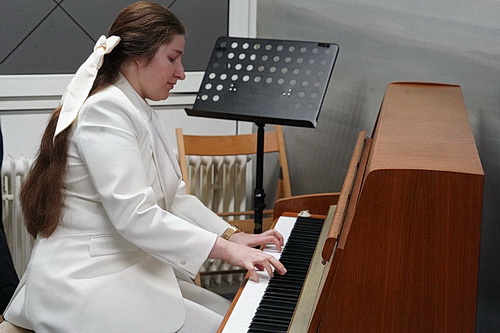 Da ist Porizko und Belowa nur reger Zulauf zu wünschen, dem sie jetzt auch formal den Weg freimachen, indem sie das rote Band durchschneiden, sehr zum Vergnügen der Gäste, die sich anschließend noch auf einen besonderen musikalischen Auftritt freuen dürfen. Bevor aber Porizko ihre Meisterschaft in der Improvisation am Klavier zu Gehör bringt, erfahren die Gäste in launigen Erzählungen noch so einiges über die Zukunft der Musikschule. Bereits mit anderthalb Jahren sollen Kinder in die musikalische Früherziehung eingebunden werden, nach oben gibt es keine Altersbeschränkung. Auch in der Sprache zeigen sich die beiden Kosmopolitinnen bewusst offen. Belowa erzählt, dass die Musiklehrer der Schule alle wenigstens zweisprachig kommunizieren können. Und, aus der Not der Pandemie geboren, haben inzwischen viele Musiklehrer gelernt, ihre Fähigkeiten in Internetsitzungen weiterzugeben. Das wollen Porizko und Belowa zum Programm machen und einen „hybriden“ Unterricht, also eine gekonnte Mischung aus Anwesenheit und digitaler Präsenz, anbieten.