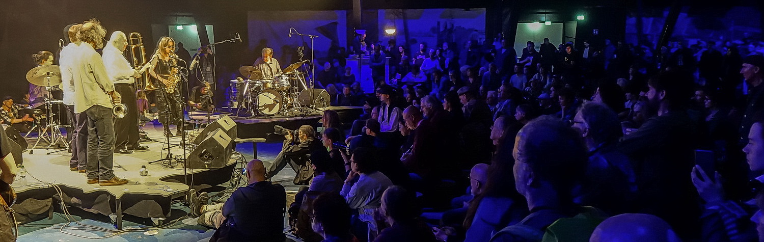 Zu einem echten Hochamt des unlimitierten Jazz wird der gefeierte Auftritt einer echten „All-Star-Besetzung“: Das Projekt „Brötzfrau“ mit dem E‑Bassisten Kaspar Brötzmann, Posaunisten Conny Bauer, Bart Maris und Akayo Tutsen am Saxofon, und Alex Krugloff schöpft aus einem kollektiv improvisierten Spiel maximal ergreifende Urkraft.