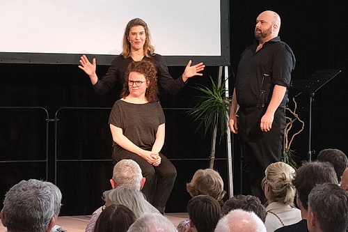 Üblicherweise wird eine neue Intendanz mit ihrem Leitungsteam zunächst im Rahmen einer Pressekonferenz vorgestellt. Das hat gute Gründe. Johannsen überspringt den Schritt und lädt interessierte Bürger am Samstagnachmittag zu einer Veranstaltung im Foyer des Theaters ein, auch Pressevertretern wird der Eintritt nicht verwehrt. Dort ist eine Bühne aufgebaut. Die Stuhlreihen davor sind voll besetzt. An ihrer Seite ist Dirk Schirdewahn als designierter Stellvertretender Intendant und Hausregisseur. In Castrop-Rauxel geboren, studierte er Soziale Arbeit, Schwerpunkt Kulturpädagogik, in München. Aktuell ist er Leiter des Jungen Staatstheaters Wiesbaden. Chefdramaturg im neuen Team wird Stefan Herfurth. Er ist in Leipzig geboren und wuchs in Neu-Ulm auf. Sein Studium der Dramaturgie absolvierte er an der Theaterakademie August Everding und der Ludwig-Maximilians-Universität in München. Derzeit ist er in der Kommunikationsabteilung der Theaterakademie August Everding beschäftigt. „Demnächst wird man ja in Bayern nicht mehr alles sagen dürfen, deshalb war es für mich Zeit zu gehen“, stellt er sich dem Publikum vor. Wäre also seine Entscheidung anders ausgefallen, wenn er wüsste, dass auch die Neusser Bevölkerung eine ideologische Geschlechtersprache zu mehr als drei Vierteln ablehnt? Fragen sind bei dieser Veranstaltung aber zunächst einmal nicht vorgesehen. Nicht zuletzt stellt sich Melanie Schulze als Dramaturgin und Mitarbeiterin Presse vor. Vertragsrechtlich hätte man, erläutert Johannsen, dem Ensemble kündigen können, habe sich aber dazu entschlossen, den Schauspielern stattdessen eine Weiterbeschäftigung anzubieten. Zehn Mitglieder des bestehenden Ensembles haben dem zugestimmt. Ein echter Schlag ins Kontor bedeutet für die neue Leitung, dass Antonia Schirmeister, Galionsfigur des alten Ensembles, einer Weiterbeschäftigung nicht zugestimmt hat. Sie kam 2019 nach Neuss und entwickelte sich als Regisseurin, Schauspielerin und Sängerin schnell zum Publikumsliebling. Wer sie in Neuss noch erleben will, sollte eine Aufführung von La Grande Dame besuchen.