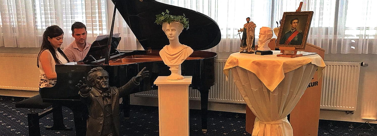 Und er erinnert dabei auch an den Huldigungsmarsch, den Wagner als Morgengabe und Geburtstagsständchen für König Ludwig II. zu dessen 19. Geburtstag am 25. August 1864 schrieb. Eine erste Aufführung in Anwesenheit des Königs fand jedoch erst am 5. Oktober in München statt. Der Huldigungsmarsch trägt die typische Wagnersche Handschrift. Er selbst schreibt zu seinem Stück, er habe etwas „aus Lohengrin und Tannhäuser und vielleicht was Neues“ komponiert. Auf Ludwig II. scheint die Aufführung keinen nachhaltigen Eindruck gemacht zu haben, denn es sind keine nennenswerten Äußerungen des Königs über das Werk überliefert. Von diesem Marsch für großes Blasorchester, der heutzutage selten aufgeführt wird, gibt es eine Klavierbearbeitung von Hans von Bülow. Und dieses Werk führt zum Abschluss des Vortrages Edita Hakobyan, Stipendiatin des Richard-Wagner-Verbandes Nürnberg, am Flügel auf. Kraftvoll und majestätisch gestaltet sie diesen Huldigungsmarsch, der an diesem Vorabend der nicht stattfindenden Festspiele in Bayreuth nicht nur dem König Ludwig II, sondern vor allem Richard Wagner und seinem Gesamtkunstwerk gewidmet ist.
