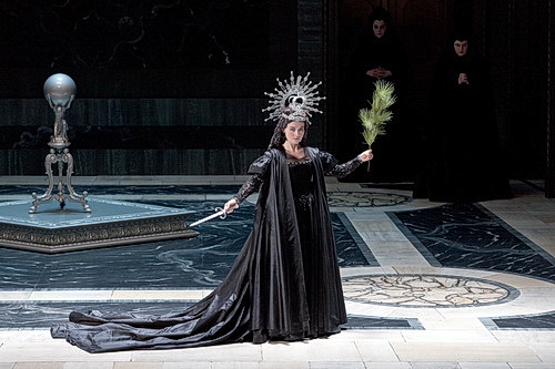 Auch in anderen Bereichen achtet der Regisseur genau­estens auf jedes Detail. So bei der Raumver­teilung auf der Bühne. „Sänger mögen eine hohe Sensi­bi­lität für Zeit haben, aber vielleicht weniger für den Raum.“ Diese Wachsamkeit ergibt eine genau­estens ausge­klü­gelte und beweg­liche Choreo­grafie, gepaart mit einer sehr leben­digen, schau­spie­le­ri­schen Leistung dank der sorgfäl­tigen Personen-Regie. Und all das zusam­men­gefügt, ergibt wiederum eine nicht nur ästhe­tische, sondern auch zauberhaft-magische Atmosphäre. Denn „die Musik erlaubt es, dem völlig Unwahr­schein­lichem oder dem etwas Dämlichem oder dem Anekdo­ti­schem eine Art Glaub­wür­digkeit zu verleihen, die in einem tragi­schen Theater­stück lächerlich wirken würde. Darin liegt eben die Magie der Musik“, erklärt Villégier. Und so werden bei dieser bewun­dernswert klaren Diktion und makellos reinen Stimm­führung in der Dekla­mation auch die Personen der Handlung lebendig; sie lieben, jubeln, toben, zweifeln und verzweifeln bis zum bitteren Ende.