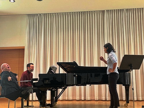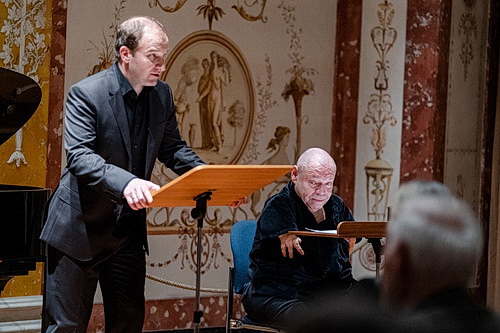 Im Toscanasaal der Würzburger Residenz findet der Meisterkurs von Thomas Quasthoff überwiegend statt, einen schöneren und inspirierenderen Raum kann man sich hierfür kaum vorstellen. Sieben junge Sänger möchten von der Erfahrung des Bass-Baritons profitieren und stellen sich seinen Korrekturen und Ratschlägen. Es herrscht eine herzliche Atmosphäre, „Sie brauchen gar keine Angst zu haben, Sie dürfen sich auch verspielen“, ist seine Botschaft an eine etwas nervöse Pianistin. Mit seiner oft lustigen Art nimmt er den Studenten die Angst. Freundlich ist er, aber streng, nichts lässt er durchgehen, wenn er sich einmal an einem Teilaspekt der Stimmführung festgebissen hat. Und er hat Erfolg, staunend sitzt der Zuhörer da und stellt eine unmittelbare Verbesserung im Klang fest. Quasthoff singt vor, betont dabei immer wieder, dass er vor zwölf Jahren mit dem klassischen Gesang aufgehört hat, nurmehr Jazz singt er, und als Sprecher fungiert er vorwiegend in Konzerten. Dennoch ist das für die Lernenden sehr hilfreich. „Es heißt Musik machen, nicht Musik denken“, betont er einen wichtigen Aspekt der Interpretation. Er nennt sich selbst einen „Sprachfetischisten“, legt Wert auf die „Regel und Pflicht der reinen Vokale“. Und wenn er bei der Österreicherin Neelam Brader – schon fertige, freischaffende Künstlerin unter anderem am Theater Dessau – an dem flutenden Strömen der Töne arbeitet, ist das Ergebnis zum Niederknien. Zum Abschluss des Kurses findet mit allen Teilnehmern im Burkardushaus am 16. März ein Lunch-Konzert statt.