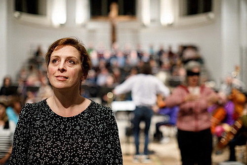Wolfgang Abendroth hat zum Libretto von Maria Hartmann sein erstes abendfüllendes Werk komponiert, das ab dem 5. November als Koproduktion von Düsseldorf-Festival und Johanneskirche aufgeführt wird. Nicola Glück legt damit ihre dritte Inszenierung in der Johanneskirche vor. Michael Zerban war schon mal vor Ort, um bei einem Probenbesuch erste Eindrücke von der Großproduktion zu sammeln.