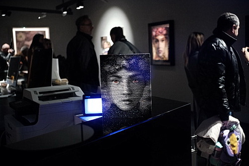 Bis Januar kommenden Jahres ist in Düsseldorf eine Ausstellung des Künstlers Maxim Wakultschik zu sehen. 15 neue Werke, die er selbst Optical Portraits nennt, sind in der Galerie Christian Marx im Stilwerk ausgestellt. Um den Porträts Tiefe zu verleihen, werden sie aus eingefärbten Holzstäbchen gefertigt.