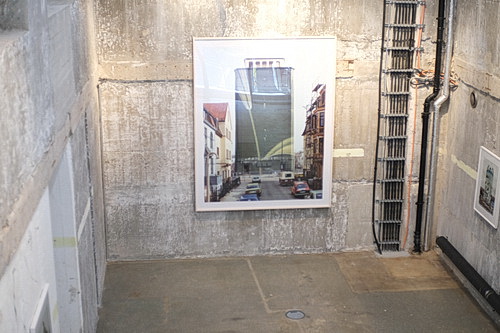 So wie an der Straßen­kreuzung Aachener Straße und Karolin­ger­straße im Düssel­dorfer Stadtteil Bilk. Hier war gar die Angst der Nachbar­schaft vor den Folge­schäden eines Abrisses für die anlie­genden Häuser so groß, dass eine Bürger­initiative gegründet wurde, um den Rückbau des 1944 fertig­ge­stellten Luftschutz­bau­werks Nr. 25 zu verhindern. Der Abriss­antrag wurde zurück­ge­zogen. 1995 bereits hatte die graue Außen­fassade von einer inter­na­tio­nalen Künst­ler­gruppe unter der Leitung von Klaus Klinger das Gemälde Zeitrei­sende verpasst bekommen, das man bis heute betrachten kann. Ab 2016 übernahm eine Projekt­ent­wick­lungs­ge­sell­schaft die Aufgabe, den Bunker neuen Aufgaben zuzuführen. So wurden auf dem Dach in zwei Geschossen Kuben aufgebaut, die nun als Wohnraum zum Verkauf stehen. Direkt darunter können im dritten und vierten Oberge­schoss künftig Showrooms angemietet werden. Ebenfalls vermietet werden Fahrrad­stell­plätze im zweiten Oberge­schoss und Multi­funk­ti­ons­räume im Tiefkeller. Im Keller gibt es eine Musikbar, die abends geöffnet hat und am Wochenende mit Musik­ver­an­stal­tungen für junge Leute aufwartet. Ach ja, die Kunst. Für die ist Platz auf rund 450 Quadrat­metern im Erd- und ersten Oberge­schoss, wobei die Eingangs­halle und eine Verkaufs­stelle mit einge­rechnet werden.