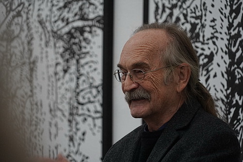Schülke hat es gefunden. In der Einsamkeit der finnischen Schären, die ihm zum Freiluftatelier geworden sind, jener in der Eiszeit abgeschliffenen Granitrücken, auf denen nicht viel wächst und was wächst dafür entsprechend lange Zeit braucht und, wie die vielfach gewundenen Formen der Kiefern, die Schülke vor der Natur zu zeichnen pflegt, sich dem kerzengeraden Plantagenwuchs verweigern. Ein krummes Holz, das, wer genau hinhört, eine Botschaft aus dem Gezweig herausschickt: „Zeichne mich!“ Ein Ruf, der allenfalls hingehaucht ist. Gerolf Schülke hat ihn vernommen. Seit 50 Jahren schon steht er, die Zeichenfeder in der Hand, vor seinen Kiefern. Immer nur, erfahren wir, zwei bis drei Stunden pro Tag, weil Licht und Schatten sich danach so stark verändern, dass sie das Bild verändern. Kunst braucht ihre Zeit.