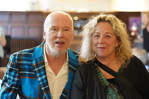 Nein, er hat Düsseldorf bislang nicht einen Tag vermisst. Und wenn man über die große Freitreppe zum Empfangssaal emporschreitet, begreift man sehr schnell, was ihn sofort gefangen genommen hat, als er die Räume zum ersten Mal sah. Die Räumlichkeiten sind erst mal atemberaubend. Stuck unter den Decken, Kronleuchter verbreiten mildes Licht, Holztäfelungen und Säulen sorgen für ein herrschaftliches Ambiente. Eine glasüberdachte Veranda schaut auf einen kleinen Garten. Hier sind wunderbare Abende mit Gesprächen und Getränken bei Kerzenlicht vorstellbar. Ein Salon, eine überdimensionale Küche und ein Ausstellungsraum sind an diesem Abend ebenso öffentlich begehbar wie ein Galeriezimmer. Von den Türen blättert die Farbe. Stromleitungen laufen über Putz. Dieser „Vintage-Look“ atmet die Atmosphäre längst vergangener Zeiten. Die Empfangshalle mit dem prächtigen, hölzernen Aufstieg und Kamin ist heute Abend bis in die letzte Ecke bestuhlt. Vor dem Ausgang zum Garten ist eine Leinwand aufgestellt. Vor dem Kücheneingang ist das Klavier aufgebaut.
