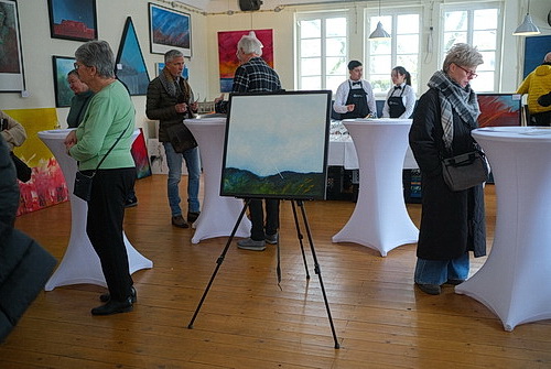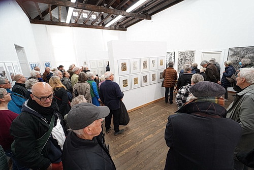 Im vergangenen Jahr starb der Maler Wolfgang Fröhlich. Jetzt werden die Bilder aus seinem Privatbesitz seinem Wunsch folgend für „einen guten Zweck“ verkauft. Bei der Vernissage zur Ausstellung, die noch bis Anfang März gezeigt wird, wurden am 21. Januar bereits fleißig rote Punkte geklebt. Ein gelungener Auftakt.