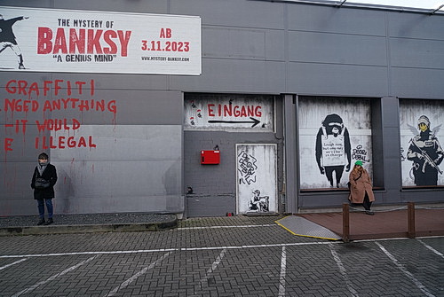 Seit dem 3. November vergangenen Jahres wird in Köln die Ausstellung The Mystery of Banksy – „A Genius Mind“ in einem stillgelegten Autohandel gezeigt. Der vermutlich derzeit berühmteste Street-Art-Künstler der Welt, der gern anonym bleiben möchte, hat die Ausstellung nicht genehmigt, und es gibt keine Originale zu sehen.